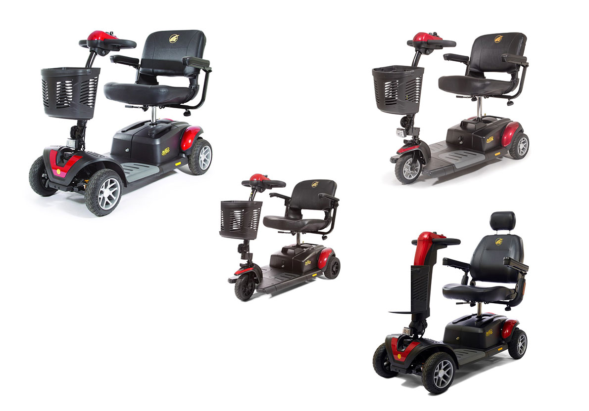 Buzzaround XL: The Buzzaround XL offers more standard features to make your riding experience better than ever. Featuring a wraparound Delta Tiller, a new LED battery gauge, and a new ultra bright LED angle-adjustable headlight, the new Buzzaround XL is also longer to offer more footroom, with a great turning radius. The Buzzaround XL disassembles in seconds with just 4 easy steps making transporting it from one destination to another a breeze!